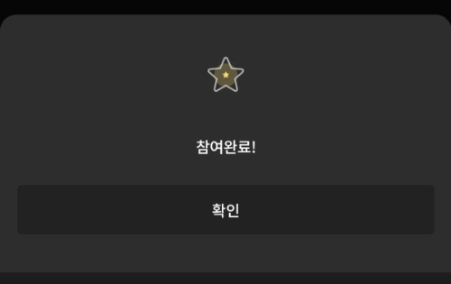 정답 제출이 완료되면 ‘참여 완료’ 메시지가 뜹니다. 이를 확인하면 성공적으로 퀴즈에 참여한 거랍니다.