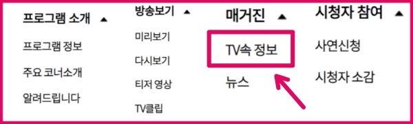 6시 내고향 홈페이지 메뉴