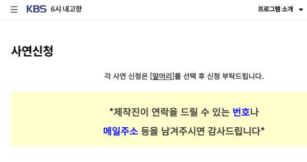 이곳은 시청자 여러분들의 목소리를 담는 공간이에요. 사연 신청이나 시청자 소감 즉 방송을 보고 느낀 점이나 건의사항, 혹은 추억 어린 고향 이야기 등 자유롭게 남길 수 있죠. 누군가의 사연이 또 다른 사람에게 위로가 되기도 하고, 실제로 방송으로 연결되기도 하니까, 생각보다 중요한 역할을 하는 공간이에요.